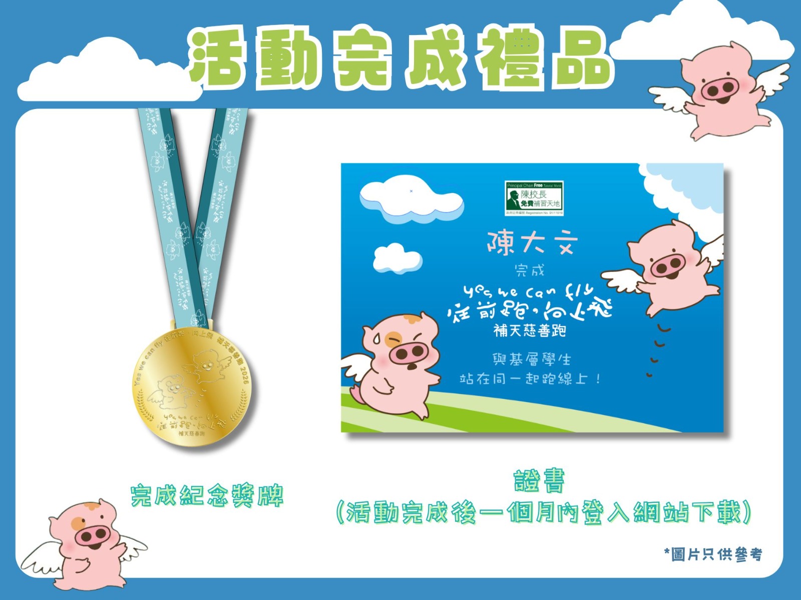 所有「補天慈善跑2026」參加者將獲贈為是次活動精心設計的麥嘜及麥兜限量版紀念品,而麥兜本尊亦會於活動當天現身,為參加者打氣。